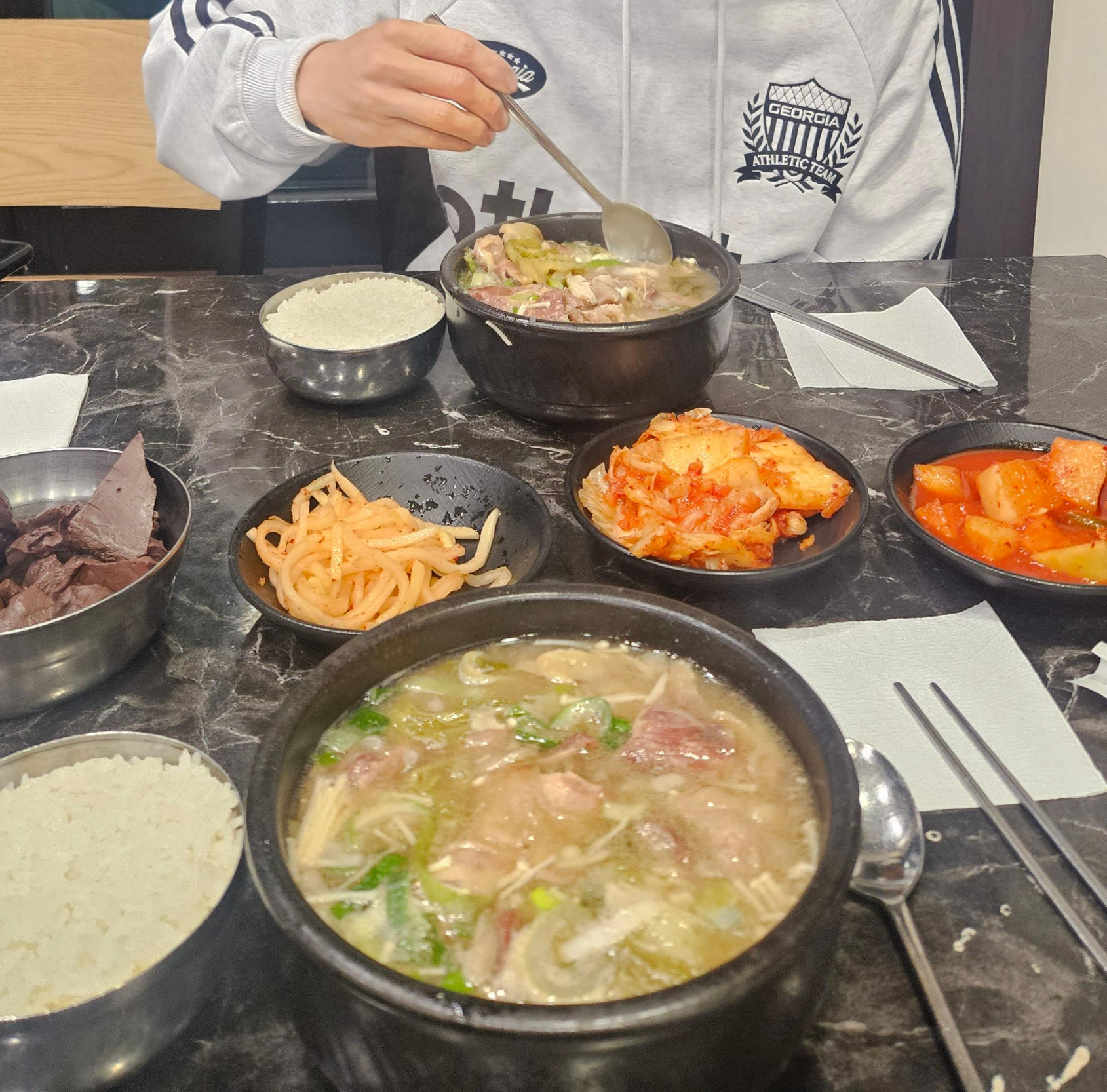 김치찌개는 어느 식당을 가도 평균적인 맛이 있지만, 이 선지해장국은 꼭 이 식당에 와야만 해요.