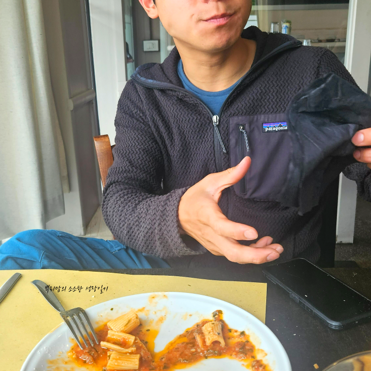 남편은 한국에서도 잘 입고 다녔지만, 쌀쌀하고 비가 자주 오는 이탈리아 여행에서 빛을 발했어요!
