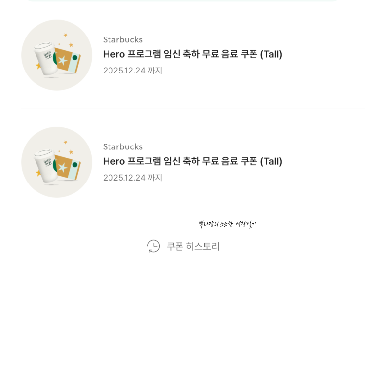 - 혜택: 스타벅스 임신 축하 무료 음료 쿠폰 2장