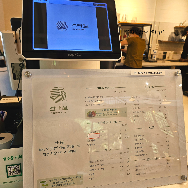 대표 메뉴: 유기농 말차라떼, 유기농 쑥 라테, 복분자 라떼