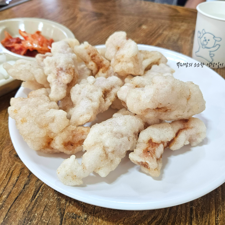 바삭한 찹쌀반죽이라 튀김옷이 얇고 고기는 부드러워요.