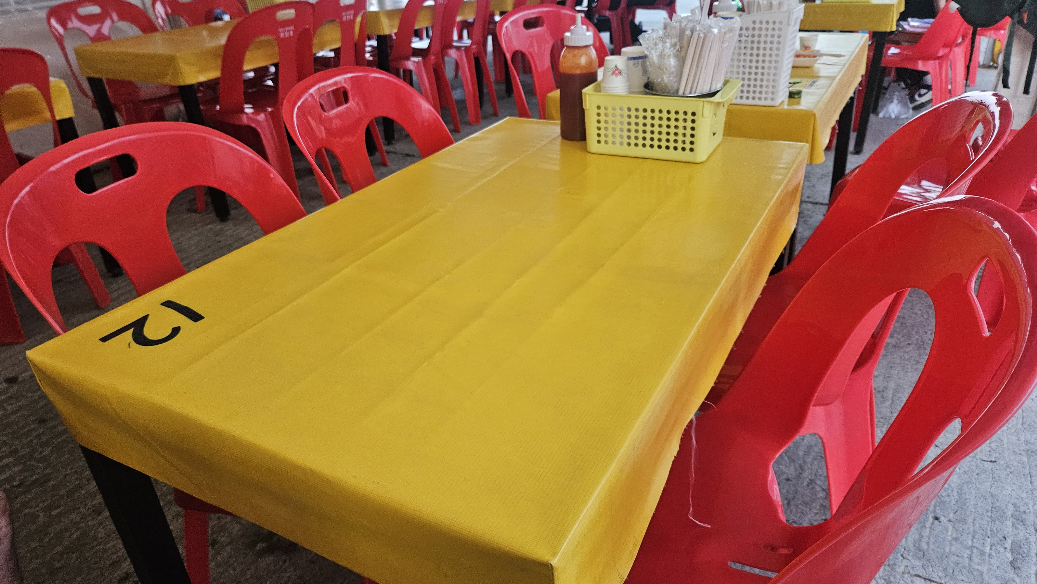 나무젓가락, 초장, 종이컵은 자리에 세팅되어 있고